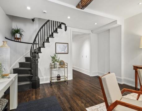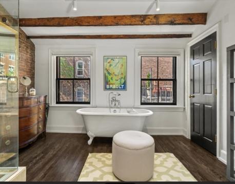 Exceptionally Renovated Single-Family Townhouse that exudes comfort and warmth. The home features 4 bedrooms, 3 full bathrooms, 2 half bathrooms and beautiful hardwood floors thru-out the home. The open entry level features a lovely living room with completely restored soundproof staircase, custom built-in bookcases, fireplace and 2 large windows that bring in natural Sunlight. The state-of-the-art kitchen has been completely renovated with top-of-the-line appliances, marble countertops, custom walnut color cabinets and access to a courtyard patio. The 2nd floor hosts a TV room with fireplace, built in bookcases, excellent size bedroom with walk-in closet. 3rd floor hosts 2 generous size bedrooms, great closet space and lovely outdoor patio. Spacious Top floor primary suite with lavish bath with dual vanity, soaking tub and shower. The finished basement is ideal for playroom, home office or storage. Close to waterfront, Whole Foods, MGH, public T and many fine restaurants