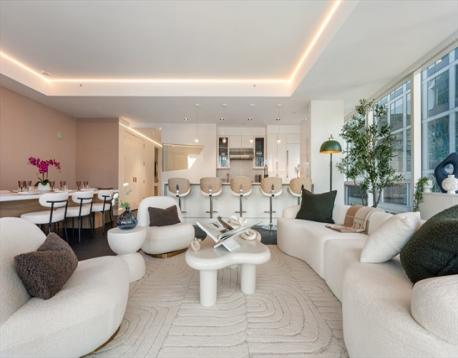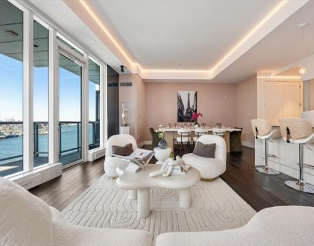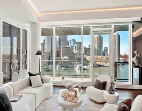 This exquisitely custom designed 3- bed 3.5 bath home at 22 Liberty blends timeless elegance with refined finishes. Enjoy sweeping harbor views from floor-to ceiling windows and a private terrace. An expansive living-dining area with 10-foot ceilings is ideal for luxurious living and entertaining. The chef's kitchen boasts a waterfall island, Wolf and Mile appliances, Sub-Zero refrigeration and custom cabinetry. The primary suite features walk-in closets and spa -like bath with rain shower. Secondary bedrooms offer en suites, plus a stylish home office/ guest suite. Highlights include Lutron lighting, 2-car garage with EV charger and private storage. Residents enjoy 5-star amenities a 24 hour concierge, fitness center, a lounge with water view terrace. The Seaport is filled with amazing restaraunts and night life.