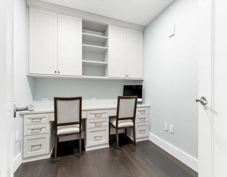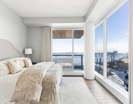 Breathtaking corner 2 bedroom plus den, 2.5 bathroom home with expansive views of the Harbor, North End, and airport. This magnificent sun-filled home features a graciously sized living room with custom built-ins, dramatic floor-to-ceiling windows, an open kitchen that is appointed exquisitely with custom cabinets and top of the line appliances by Wolf, Miele and SubZero. The Primary suite has a corner exposure and a stunning spa-like bathroom with double vanity, marble soaking tub, and glass shower. The private second bedroom has an en-suite bathroom, and down a hallway leads to a spacious bonus room ideal for a home office or guest room. Tandem parking space for 2 cars in the garage directly below the building and an additional storage unit are included in this offering. Twenty Two Liberty features a collection of amenities including 24 hour concierge, doorman, fitness center, board room and entertaining space with terrace. Just steps from Boston's best restaurants and shopping.