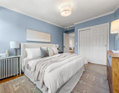 The amazing two bedroom penthouse you have been looking for with deeded parking and private roof deck! Located on a tree lined side street and steps to SRV and many other South End dining destinations. Just two flights up brings you into the bright and sunny open living room with spacious dining area and a full staircase to the just completed roof deck with sweeping city views. Cooks kitchen with stone countertops, stainless appliances and great storage. The spacious primary bedroom easily accommodates a king sized bed and has great closet space. The second bedroom is ideal for guest or nursery and a home office. All tile bathroom with tub/shower and additional storage. Full deeded parking space. Hardwood floors throughout, central a/c and home laundry complete this home.