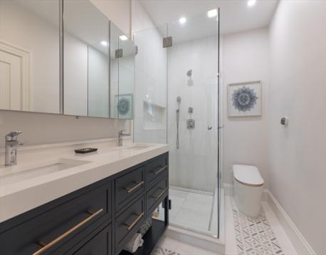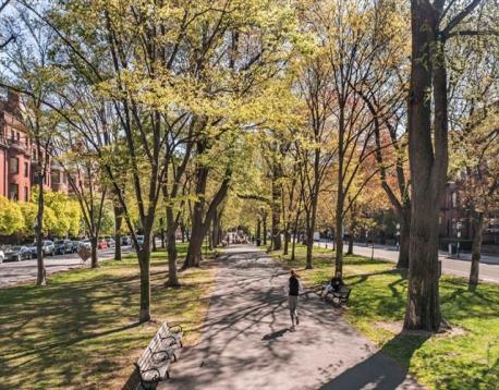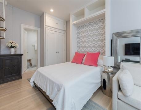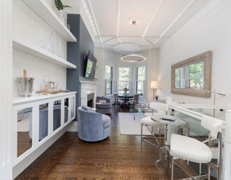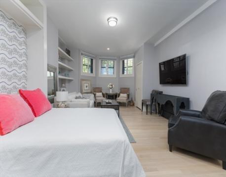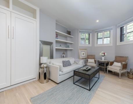 Stunning 2+ bedroom parlor duplex on iconic Commonwealth Avenue, blending modern luxury with classic charm. This newly renovated home features an open floor plan with ornate12-foot ceilings, an oversized fireplace, floor-to-ceiling built-ins, hardwood floors, and a large bay window overlooking the Comm Ave Mall. The well-designed kitchen offers marble countertops and new stainless-steel appliances, ideal for both everyday living and entertaining. A powder room and two south-facing bedrooms are located on the parlor level, which includes a spacious primary suite with custom closets and a luxurious en-suite bath featuring a marble double vanity and oversized glass shower. A wide spiral staircase leads to the lower level with high ceilings and large windows. This versatile level includes a large sitting room with a custom queen-size Murphy bed and marble full bath, making it an ideal family room, guest suite, or third bedroom. Deeded storage and direct access to 2 tandem parking spaces.