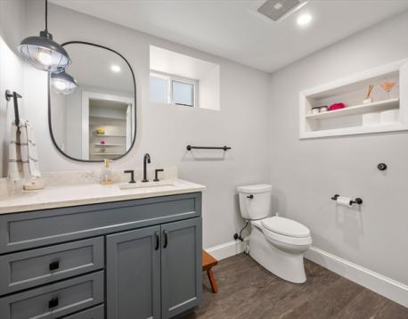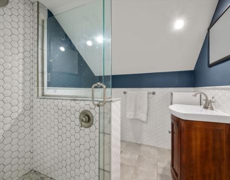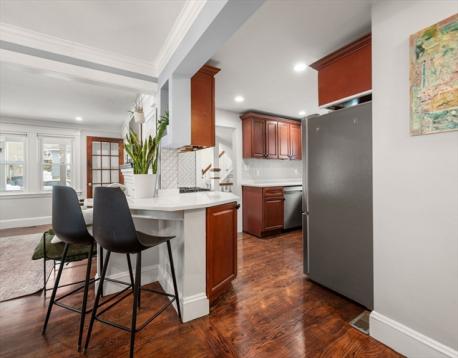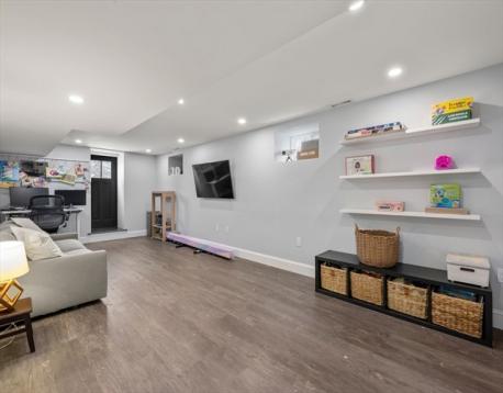 Beautifully renovated four-bedroom, three-bath home near the Newton border in desirable West Roxbury. The main level features a renovated kitchen with stone countertops, stainless steel appliances, and custom cabinetry, opening to a spacious living and dining room with gleaming hardwood floors throughout. Two bedrooms and a fully renovated bath complete this level. Upstairs offers two additional bedrooms and another renovated full bathroom. The finished lower level includes a large bonus room with walkout access to the stone patio and expansive backyard, plus a renovated full bath, laundry area, and generous storage room.Single-car garage suitable for a compact vehicle. Move-in ready and ideally located near shops, parks, schools, and commuter routes.