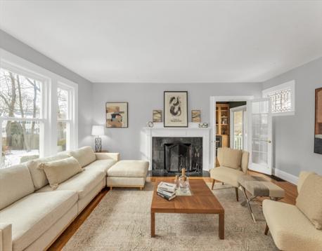 Magnificent Bellevue Hill Colonial, instantly recognized by its stately horseshoe driveway and exquisite stucco exterior. This exceptional residence offers 2,900 SF of living space across three finished levels, set on a 14,614 SF lot with garage parking. A grand foyer with dentil crown molding welcomes you into elegant formal spaces, including a fireplaced living room and a sun-filled library with a wall of windows, fireplace, and French doors overlooking the expansive deck and serene, pastoral gardens. The fireplaced formal dining room flows seamlessly into a butler’s pantry and modern eat-in kitchen featuring chef-quality appliances. The main level also includes a flexible office or guest room and a half-bath. The second floor offers four generously sized bedrooms, two full baths, and access to two decks. The third floor is highlighted by a private primary suite with a spa-like bath—an ideal retreat. A rare opportunity blending classic architectural detail with modern comfort! WOW!!!