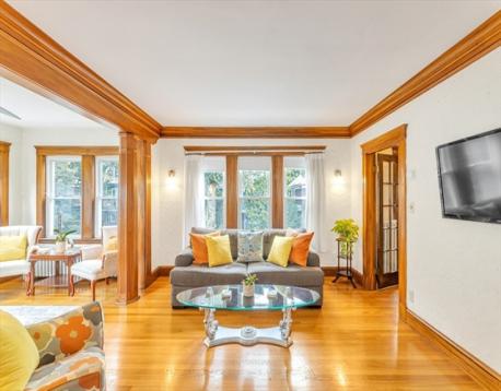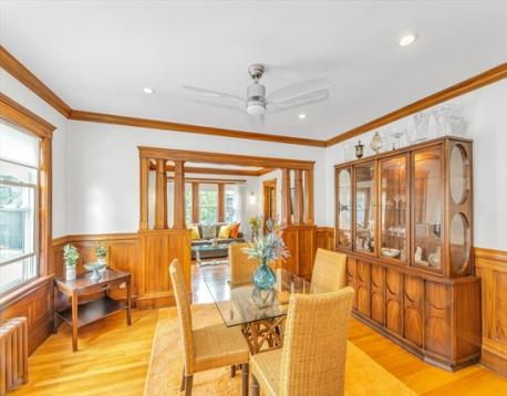 This remarkable three-bedroom condo features an expansive living area adorned with a wall of windows that allows sunlight to pour in, illuminating the exquisite Gumwood detailing throughout. The generously sized updated kitchen seamlessly connects to a bright and airy three-season porch and deck, creating an ideal setting for entertaining. The residence includes three bedrooms and a recently renovated bathroom, enhancing its stylish appeal. Additionally, there is a spacious walk-up attic that offers potential for creative transformation. Situated on a picturesque tree-lined street leading to Jamaica Pond, this property is conveniently located near the vibrant shops and restaurants of Jamaica Plain, with easy access to the Longwood Medical Area and downtown Boston via bike paths or public transportation. The condo also includes garage parking, a newer gas furnace, and a lovely, ample yard space. This is truly a JP gem! Walk-up, unfinished attic offers an additional 1000sf roughly....