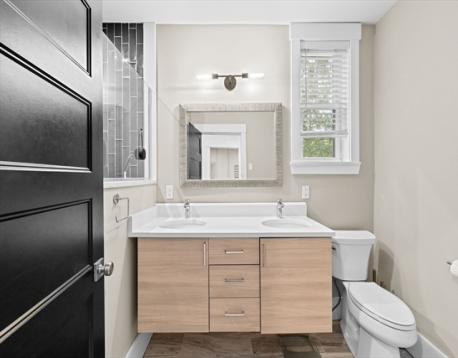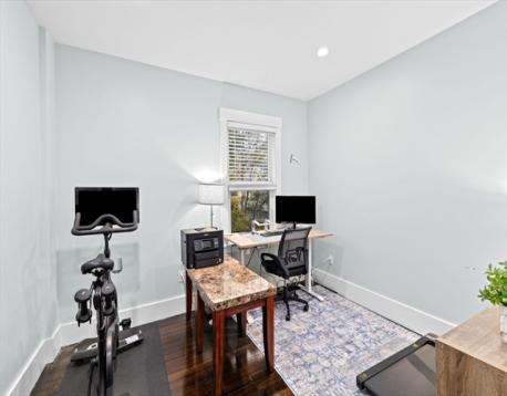 Welcome to this beautifully designed Philadelphia-style bi-level condo, where timeless style meets modern touch. Gut renovated in 2018 and designed by Best of Boston award winner Louis Ashman, this home combines sophistication and everyday comfort. The chef-inspired kitchen features quartz countertops, Canella Rustik custom cabinetry, and top-of-the-line JennAir appliances. The open floor plan flows from the dining space into a spacious living area—perfect for entertaining or relaxing at home. Additional highlights include off-street parking, hardwood flooring, luxurious bathroom fixtures, central AC & in-unit laundry. A private backyard space showcases maintenance-free turf coupled with a stone patio that is ideal for hosting cookouts and providing room for pets to roam. Offering a versatile basement that can be utilized as a gym & storage and being located within walking distance from the T, this property is not one you will want to miss.