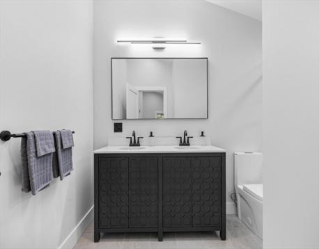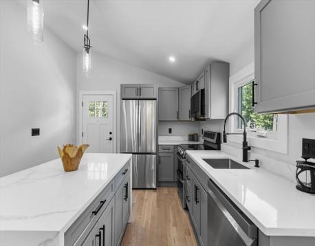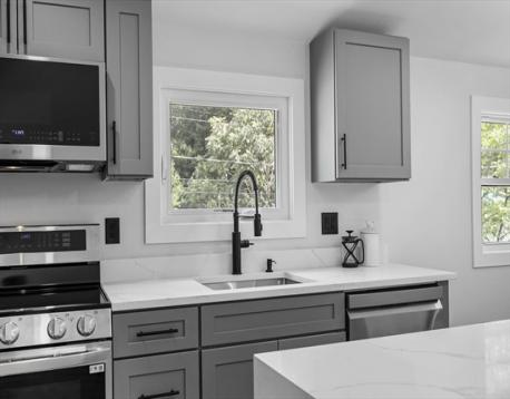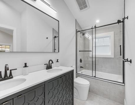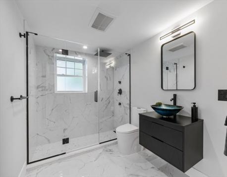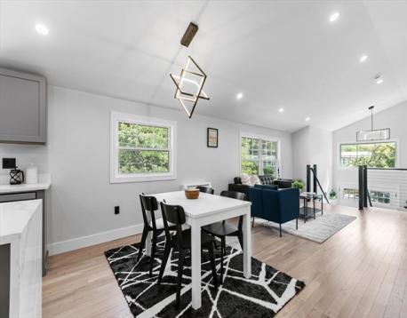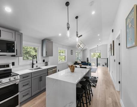 A contemporary home rebuilt from frame to finish in 2025, showcasing curated design, elegant luxury finishes and modern smart technology with energy efficiency throughout. Step into dramatic aesthetics with soaring 16' cathedral ceilings at the foyer’s peak, revealing a stunning open-concept main level. Enjoy your culinary haven with custom cabinetry, LG appliances, and an island bar adorned with a waterfall quartz countertop. Spa-inspired baths offer multi-jet and rainfall showers, a whirlpool tub, and premium designer vanities. Rich hardwood flooring enhances both levels. Tailor your comfort with a high-efficiency, 5-zone Fujitsu heating and cooling system. A versatile den provides flexible space for a guest room, office, or home theater. Unwind in your private outdoor oasis with a paver patio, manicured grounds, and a 2-car driveway with EV charger. Ideally located in the heart of Stony Brook Reservation, near parks, trails, golf course, Legacy Place, the commuter rail, and I-93.