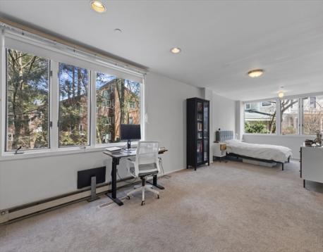 Tremendous opportunity! Needs updating- priced to sell. One of the largest units, 2623 sf spread on the 3rd and 4th floors, each with private entrance/access to the elevator, connected by an interior staircase. Sun-splashed, flexible floor plan, dramatic walls of windows, French doors, lovely flow, flex. floor plan. Offers 4-5 beds, 3 full baths, expansive LR, DR, large bedrms & huge closets. Perfect for gatherings, entertaining, in-law apt, office, au pair. Each floor has a kitchen, baths, bedrooms, balconies, and tranquil greenery. Includes 2-car garage parking (tandem), added storage room, pool, tennis, the"castle" housing the clubhouse, library, gym, & on-site management. Cabot Estate, spread over 23 beautifully landscaped acres with walking paths, is located in the heart of the Emerald Necklace. Take a 1.5-mile walk around the captivating Jamaica Pond & Olmstead Park, boating,& sailing. Gated community! Cabot Estate is an urban Oasis! Best combo of nature and urban amenities.