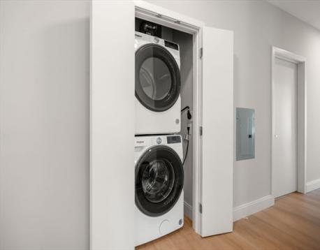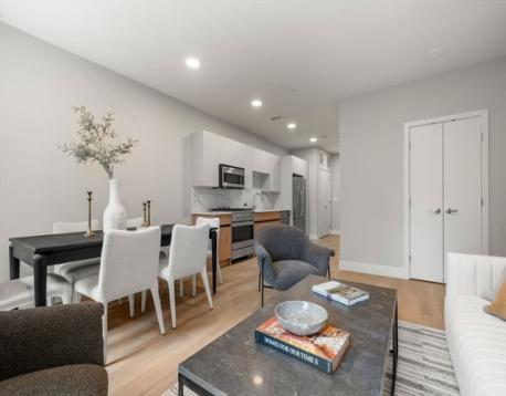 Experience refined living at The Jordan, ideally located near the Brookline town line in vibrant Brighton. This two-bedroom plus den corner residence boasts expansive triple-pane windows, open-concept living, dining, and kitchen areas with natural light and sweeping views. The modern kitchen features sleek quartz countertops and premium Fisher & Paykel stainless steel appliances, perfect for both everyday living and entertaining. The primary suite includes a private en-suite bath, offering comfort and privacy. One garage parking space is included. With over a dozen distinctive floor plans available, The Jordan offers exceptional options to match your lifestyle.