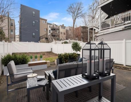 Recently renovated and sun filled, 2bd/1ba in Jeffries Point is an ideal entry into homeownership. 1 block from the waterfront, it offers a smart floor through layout with bedrooms on opposite ends and great natural light. The modern kitchen features stainless steel appliances, black granite counters, and clean finishes, opening to a private deck perfect for morning coffee or unwinding. Enjoy central A C, in unit laundry, and dark stained hardwood floors throughout. The updated bath includes a tub and subway tile. A shared backyard adds extra outdoor space. Convenient street parking and just 0.6 miles to Maverick Station make commuting easy, with restaurants, cafés, and Starbucks. Close walk to Piers Park featuring amazing skyline views. This home blends lifestyle, convenience, and long term value in a vibrant waterfront community. Easy access to downtown, Logan Airport, and the Seaport via water ferry. Stop paying rent and start building equity! Showings limited to open houses only.