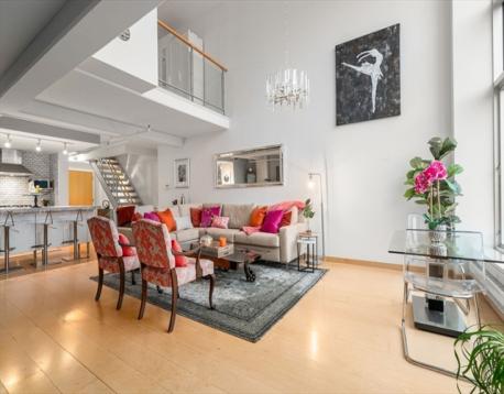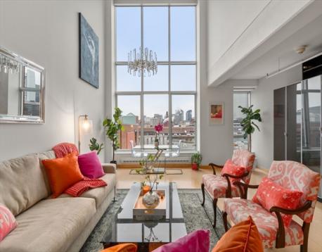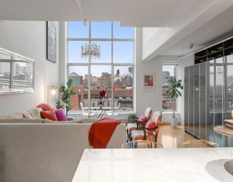 Welcome to 25 Channel Center Residence 807! This spacious 1 bedroom, 1.5 bath contemporary duplex offers 1,229 square feet of abundant natural light, water views, and LARGE GARAGE PARKING SPACE. With soaring 18-foot ceilings and gracious floor-to-ceiling windows, you'll enjoy incredible city and Fort Point channel water views right from your living room. The open concept-layout features a gourmet kitchen with Quartz counters, Viking and Wolf appliances, and a sleek island with bar seating. A half bath rounds out this level. Upstairs, the generous bedroom with numerous closets includes a large ensuite bath with soaking tub and second tiled glass shower plus in-unit laundry. Built in 2004, 25 Channel Center is a sought-after concierge and elevator building with direct access garage parking. Minutes to Fort Point dining, cafes, Trader Joes, and both the Waterfront and bustling Seaport districts. Transit-oriented 0.6 miles to the Red Line Broadway T, I-90 & I-95.