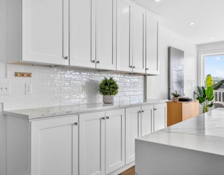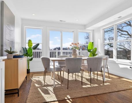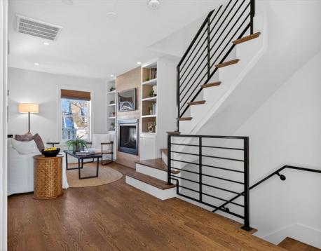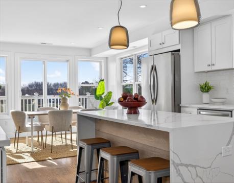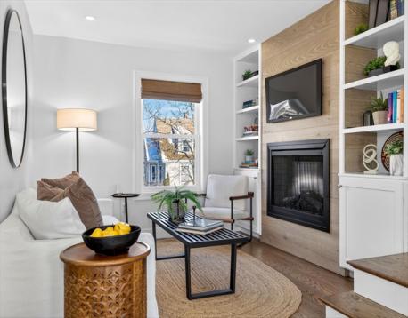 Tucked at the top of the hill overlooking the surrounding areas sits this beautifully renovated duplex home with garage parking which also enjoys a great neighborly vibe! Always filled with natural light, the spaces are modern & charming with easy access to the outdoors as both levels boast south facing decks, one in the dining area and one off the primary suite. Watch the seasons change while enjoying all the updates this home has to offer. An open concept kitchen & dining area beautifully designed to include a gorgeous island with a waterfall quartz countertop and two walls of windows for full wow factor. The comfort of a decorative fireplace, custom built-in bookcases, and modern wood accents make the living room a sophisticated retreat. Three bedrooms with wood flooring blend naturally with the two baths accented with contemporary tile work and natural wood vanities. Don’t miss this opportunity to be in the middle of it all but feel removed from the hustle of the city.