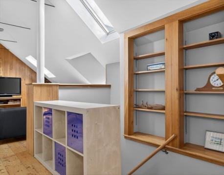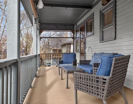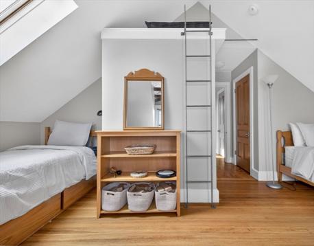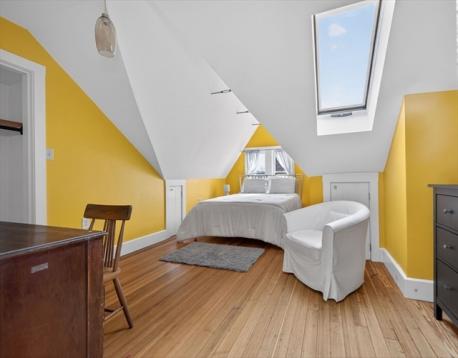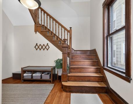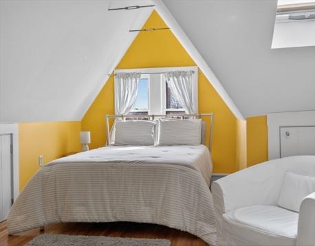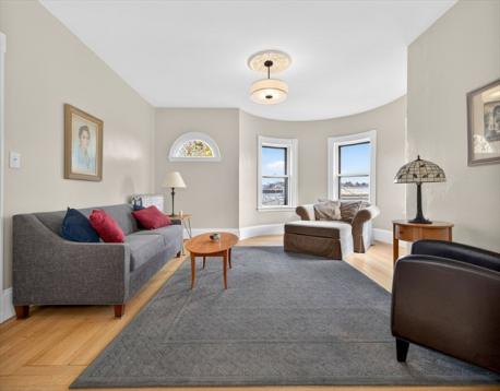 Some homes hold you differently. From the moment you meet the original ornate staircase and that glowing stained glass window, you know this one is something else. Spread across the third and fourth floors of an 1895 Victorian, this 2,472 sq ft duplex penthouse lives like a townhouse in the treetops. Formal living and dining rooms are generous and light-soaked, high ceilings and hardwood floors that have only improved with time. A turret adds a curve of architectural magic you rarely find. The kitchen is warm and well-stocked: butler's pantry and a second pantry. Upstairs the home surprises you again: a second living room with vaulted wood-paneled walls and skylights, two bedrooms with real roofline character, and a custom corrugated steel bath and laundry unlike anything you have seen. Out back, a large private deck made for long dinners opens to a shared yard with real room to breathe. Stony Brook T, Southwest Corridor, City Feed, bike paths. JP at its absolute best.
