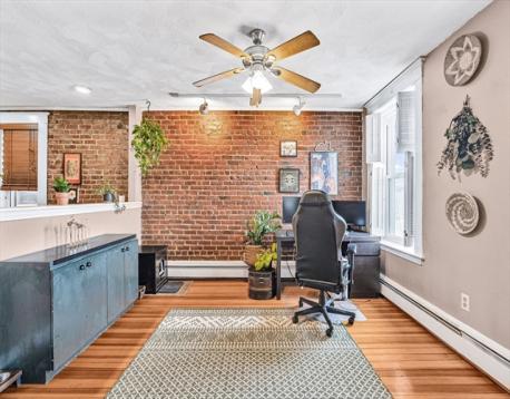 Welcome to this charming one-bedroom residence at Ivy Gate Halls, a distinguished brick building ideally located near Cleveland Circle. Thoughtfully designed for both comfort and functionality, the home features an open-concept kitchen and living area that flows seamlessly together. Hardwood floors and oversized windows fill the space with natural light, creating a warm and inviting atmosphere with serene neighborhood views. The kitchen is equipped with granite countertops, stainless steel appliances, and ample cabinet space, opening directly into a spacious living area perfect for everyday living or entertaining. Just off the living space, a large private deck offers an ideal setting for outdoor relaxation. Distinctive architectural details, including exposed brick walls and high ceilings, add character and charm throughout. The bedroom is well-proportioned and offers comfortable living with convenient access to the full bath.