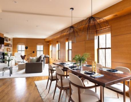 Exceptional South End corner penthouse with a wall of sunny west-facing windows & an incredible private roof deck. This three-bedroom plus office, three-bath home sits in the coveted Eight Streets neighborhood & blends timeless charm with modern luxury. Originally built by Kennedy Design Build & recently professionally re-designed, the unit spans two bright, spacious floors with seamless flow for living & entertaining. The main level features an open-concept layout with a sun-filled living room and gas fireplace, a chef’s kitchen with high-end appliances, a dining area for hosting, a grilling deck, and a versatile office that could serve as a fourth bedroom with an attached full bath. Upstairs are three generous bedrooms, including a serene corner primary suite with five windows, a marble bath, and walk-in closet. The private roof deck offers skyline views, a head house with wine fridge, and no adjacent decks for exceptional privacy. Two oversized storage spaces complete this rare home