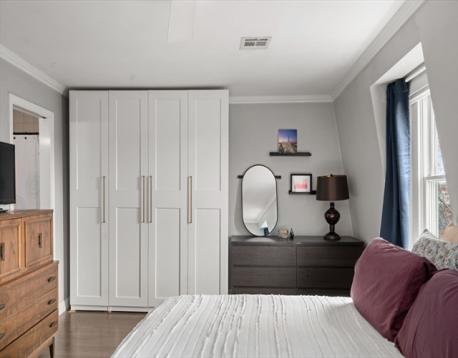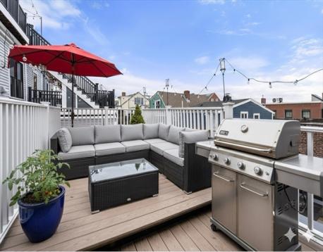 Located at the peak of Bunker Hill Street, this inviting penthouse condo has everything you're looking for! The entry hall creates a welcomed transition into the light-filled living space, with a cozy wood burning fireplace, the recently renovated kitchen, and your sprawling private deck. An open kitchen features updated cabinetry with a center island, stainless steel appliances, tiled backsplash, and abundant storage. The spacious bedroom offers a flexible layout, easily accommodating a king-sized bed and sitting area. A private, expansive walk-out deck is the perfect extension of your living space - great for morning coffee, summer dinners, or unwinding at the end of the day. Additional features include central air, private basement storage, and a low condo fee. Excellent proximity to public transportation, neighborhood parks, and Charlestown’s popular restaurants.