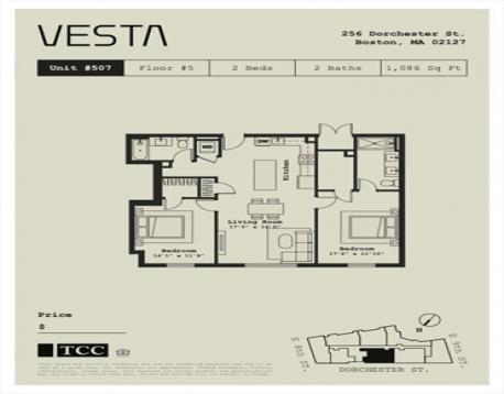 Recently completed and ready for immediate occupancy. Residence 507 is one of the last front facing penthouses at Vesta. Residences feature high end finishes including Carrara Quartz countertops and backsplashes, custom Metropolitan cabinetry, Bosch kitchen appliances including gas cooking, vented hoods, in-unit washers and vented dryers and engineered hardwood flooring. Luxuriously appointed bathrooms include Quartz countertops, Porcelanosa tiles throughout, and Moen faucets. Amenities include garage parking, common and private roof decks with Boston skyline views & a top floor clubroom w/ a wet bar. Vesta is a professionally managed, elevator building. Vesta also includes ground floor retail space with a cafe and Bell's Market, which offers groceries, freshly prepared foods and a selection of beer and wine. Residence 507 has a private rooftop deck with a gas line and 1 garage parking space