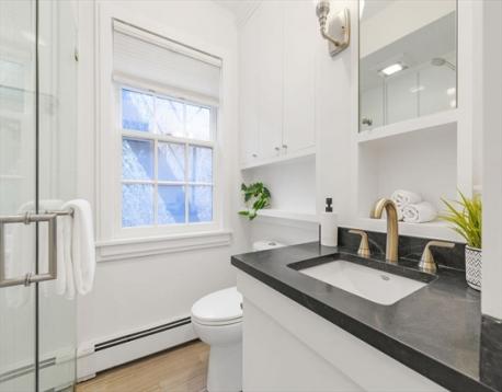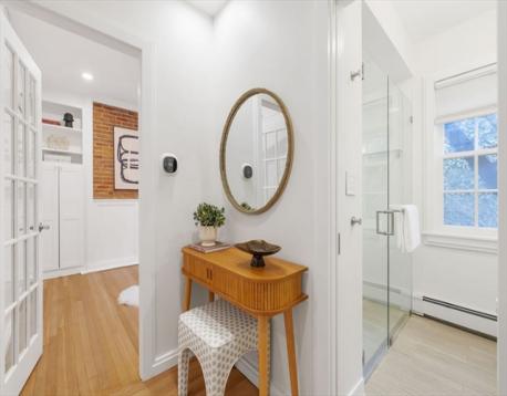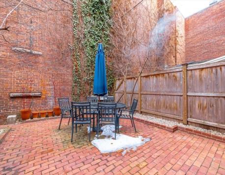 Tucked along a gas-lamp–lit street in historic Bay Village, this impeccably maintained parlor & garden duplex lives far larger than its square footage & offers the rare luxury of a true private outdoor oasis. A gracious entry w/minimal stairs leads to a sun-drenched south/west-facing home where natural light pours through a dramatic wall of glass overlooking an expansive brick patio—perfect for entertaining, gardening, or quiet mornings in the city. The open-concept living & dining space is anchored by a wood-burning fireplace & complemented by a coveted powder room on the main living level. Period details, exposed brick, custom built-ins, & excellent storage add warmth & character throughout.The professionally self-managed association offers exceptional value, w/a low $242 condo fee that includes heat, cooking gas, & hot water. Residents also enjoy special garage parking rates at the nearby Revere Hotel. Ideally located win a short walk of three T stations.