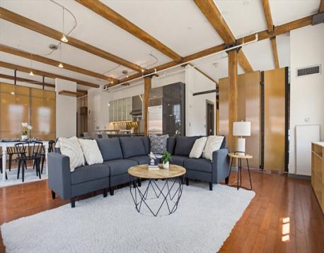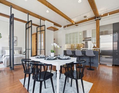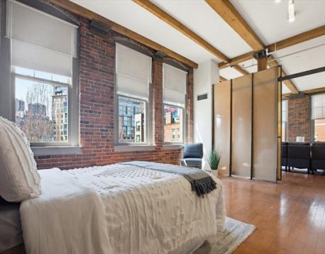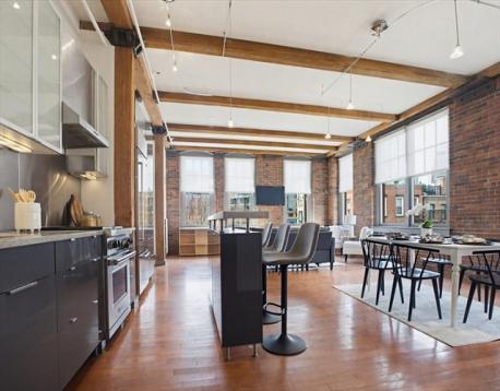 Sun-drenched corner residence in the heart of the North End. Located on the 3rd floor of the historic Waitt & Bond Cigar Factory, this stunning 2BR/2BA home offers over 1,300 square feet of beautifully designed living space. Soaring 11’ ceilings and 13 oversized windows flood the home with natural light throughout the day. The open concept kitchen seamlessly flows into a spacious living and dining area—perfect for entertaining. The primary suite features an ensuite bath, while additional highlights include hardwood floors, custom built-ins, central air, and in-unit laundry. This professionally managed elevator building also offers a common roof deck with sweeping views of the Rose Kennedy Greenway and the Boston skyline. Unbeatable location just moments from the Waterfront, TD Garden, Government Center, the Financial District, with world class dining, shopping, and cultural attractions just outside your door. OH Saturday April 11th: 12-1:30 and Sunday April 12th: 12-1pm.