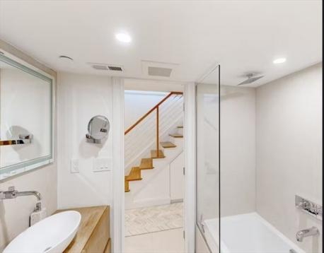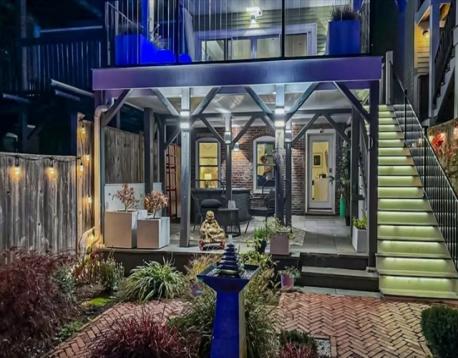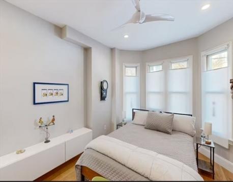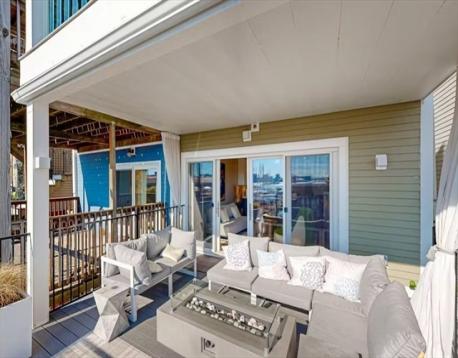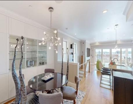 One of a kind Jeffries Point 3 bed/2.5 bath condo featuring 1,544 SF of living space on two levels. This home features harbor views, multiple private outdoor areas including a 240 SF deck, covered porch with jacuzzi tub, and a fenced landscaped garden. The open layout main level is ideal for entertaining, framed by a dramatic wall of glass with skyline views and sleek gas fireplace. The custom kitchen includes an oversized island with seating, white quartz countertops, stainless appliances with gas cooking, an LG refrigerator (2024), and a LG smart dishwasher (2025). A half bath and a serene primary suite with bow window, walk-through closet, and en-suite bath complete this level. The fully renovated lower level (2023) offers two additional bedrooms or flexible living space, a full spa-like bathroom, laundry, ample storage, and 3-zone radiant floor heating. Located steps from East Boston’s waterfront, parks, ferry, dining, and the Blue Line, offering easy access to downtown Boston.