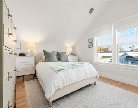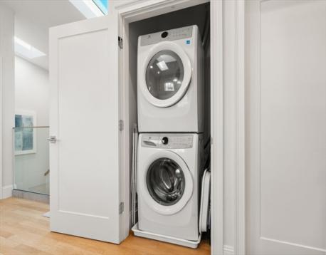 Welcome to 269 Gold Street, an elegant and sunlit penthouse on the west side. Built in 2021, this brand-new unit features soaring ceilings and stunning skylights that flood the space with natural light. This well-appointed 2 bed, 1.5 bath residence spans 896 sq ft of thoughtfully designed space. You'll love the centerpiece chef’s kitchen, complete with stainless steel appliances, quartz countertops, and plenty of cabinet storage. Enjoy hardwood floors throughout, in-unit laundry, and two spacious bedrooms. Step out onto a private deck that expands your living area, offering unobstructed views of the iconic Back Bay skyline. Nestled on a quiet one-way street, this home is just minutes from public transit, providing a rare blend of serenity and prime South Boston convenience. Rental parking available in the building.
