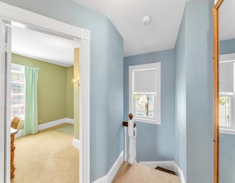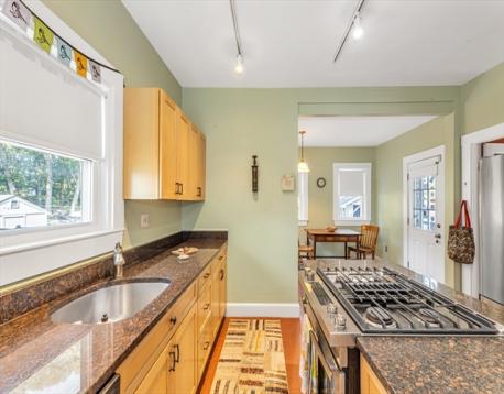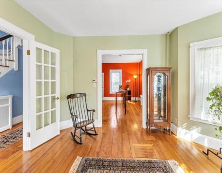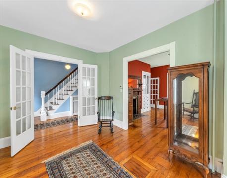 Welcome to this Circa 1895 Victorian with all it's original charm and historic features. A gracious Foyer invites you to this turn of the century home. Where all the rooms are graced with high ceilings and gleaming wide natural wood flooring. French doors lead from room to room generating space and charm. The formal dining room has built in china cabinet and a beautiful intricately deigned tile fireplace built by an artist. Although the windows are new; the original size stye and molding remain in tact. The Great surprise is the modern renovated kitchen with custom cabinets, stainless steel appliances, an island with built in countertop range and oven adjacent to a cozy dining area for cooking and conversation. The second floor has 3 bedrooms and a modern tiled bath. Looking for more space? The walk up attic is the spot for future potential. The yard is large and inviting for outdoor fun or gardening. Garage and long driveway a plus for city dwellers.