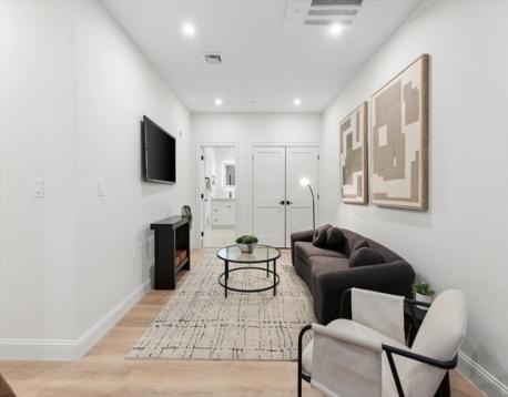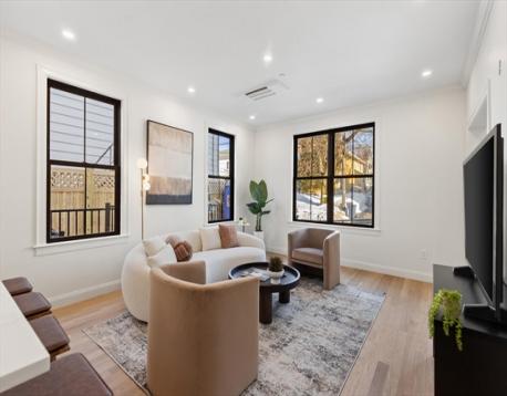 Welcome to 27 Shepard Street in Brighton, ideally located just moments from Brighton Center, BMC Brighton, and multiple MBTA options for an easy commute. Unit 1 features its own private entry and is a spacious 3-bed, 2.5-bath duplex offering 1,829 sq ft of thoughtfully designed living space across two levels. The main level features an open living area with white oak hardwood floors, a bright living room, and a chef’s kitchen with large island, stone countertops, and a premium Fisher & Paykel appliance package. A convenient half bath adds functionality for guests. The primary suite includes a walk-in closet and beautifully appointed marble and limestone spa-like ensuite bath. The lower level offers a versatile family room with direct exterior access, two additional bedrooms, a full bath, and laundry. Enjoy private outdoor space with a patio, plus one off-street parking space, close to shops, dining, parks, and major roadways.