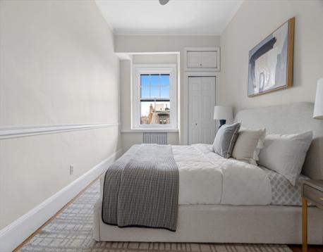 Perched on the top floor of a grand historic Back Bay mansion, this impeccable, turn-key residence is a pin-drop quiet sanctuary. Ascend the grand staircase past the stained glass, or enjoy a ride in the well-maintained vintage elevator to your new home. Inside, discover an elegantly updated interior defined by soaring 10ft ceilings that provide magnificent architectural volume. The thoughtfully redesigned kitchen is anchored by a Sub-Zero refrigerator, wine fridge, and features pristine new counters, sink, lighting, and backsplash. The bathroom has been meticulously renovated. 2 generously sized bedrooms provide genuine scale and flexibility, while freshly refinished hardwood floors and crisp new paint throughout create a polished, cohesive aesthetic ready for immediate occupancy. Complete with modern in-unit W/D, a parking space, a private 5x5x10 storage unit, and 200+ nearby restaurants that deliver to your door, this home checks every box for sophisticated, effortless city living.