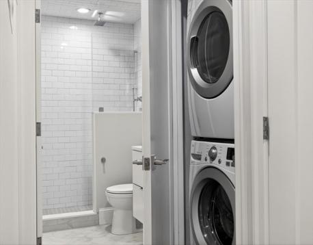 Enjoy the best of city living in this new-construction (2017) 2-bedroom, 2-bath condo with garage parking and private outdoor space. The large windows in this condo create a sun-filled environment throughout the living room, kitchen, and primary bedroom. This modern kitchen includes stainless steel appliances, white cabinets, and waterfall-edge countertops. The primary bedroom includes an en-suite bath and a professionally built walk-in closet, while the second bedroom includes two professionally built closets. Other features include: Central Air, Nest System, Surround Sound, rainfall showerheads, a private extra storage room, and in-unit laundry. The modern features and recent cosmetic renovation convey quality and care, making buyers feel confident in the property's value. The unit shows like new as it just underwent a cosmetic renovation.