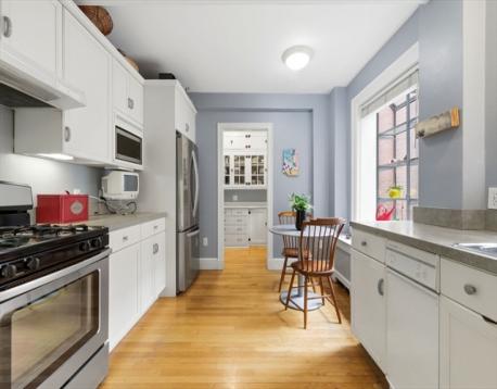 Elegant floor-through residence on coveted Marlborough Street offering an exceptional layout with direct elevator access, four exposures, and a private entry. A grand foyer welcomes you into a beautifully proportioned living room featuring a handsome fireplace, custom built-ins, and views overlooking tree-lined Marlborough Street. The expansive formal dining room flows seamlessly into the eat-in kitchen, complete with a generous butler’s pantry—ideal for both everyday living and entertaining. There are 4 bedrooms, including a luxurious primary suite with a fireplace and walk-in closet. Located in a well-maintained, professionally managed New York-style building, this residence is 100% owner-occupied, pet-friendly, includes private storage, and features a spectacular common roof deck with panoramic views of Back Bay and the Charles River. Ideally situated just steps from the Commonwealth Avenue Mall, the Charles River Esplanade, and the premier shops and restaurants of Newbury Street.