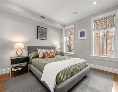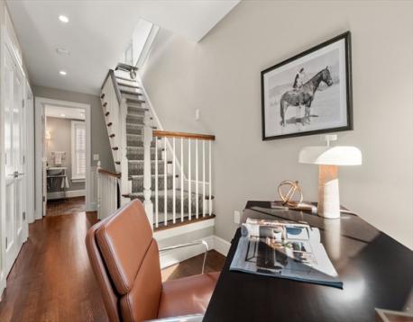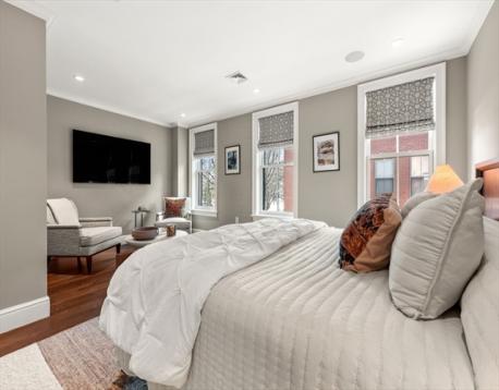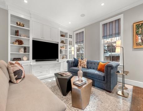 Federal style single family renovated in 2014 offers 3+ beds, 2.5 baths, blue stone patio, roof deck and garage parking at Wilkes Passage. Double-parlor entry to an open floor plan with gas fireplace & custom built-ins, currently designed to offer designated din/liv room. Garden level features a beautifully designed kitchen with breakfast bar, Calacatta counters, professional appliances by Wolf (Built-In Double Oven, 6 Burners Rangetop & Microwave Drawer) and Sub-Zero (French Door Refrigerator & Wine Storage). The expansive family room with floor to ceiling custom windows overlooks the enclosed back patio oasis. The primary suite with sitting area spans the entire floor with walk-in closet and spa-like bath with dual sink vanity, walk-in shower & soaking tub. The top floor offers 2 large guest beds, designated office space & designer bath. Other aspects include hardwood floors, custom closets & mill work, wired for Home Audio/Surround Sound and technology-driven heating/cooling system.