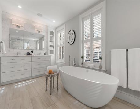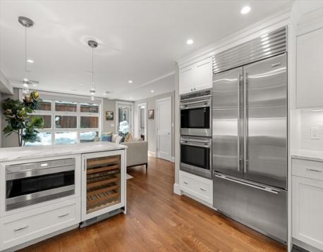 Federal style single family renovated in 2014 offers 3+ beds, 2.5 baths, blue stone patio, roof deck and garage parking at Wilkes Passage. Double-parlor entry to an open floor plan with gas fireplace & custom built-ins, currently designed to offer designated din/liv room. Garden level features a beautifully designed kitchen with breakfast bar, Calacatta counters, professional appliances by Wolf (Built-In Double Oven, 6 Burners Rangetop & Microwave Drawer) and Sub-Zero (French Door Refrigerator & Wine Storage). The expansive family room with floor to ceiling custom windows overlooks the enclosed back patio oasis. The primary suite with sitting area spans the entire floor with walk-in closet and spa-like bath with dual sink vanity, walk-in shower & soaking tub. The top floor offers 2 large guest beds, designated office space & designer bath. Other aspects include hardwood floors, custom closets & mill work, wired for Home Audio/Surround Sound and technology-driven heating/cooling system.