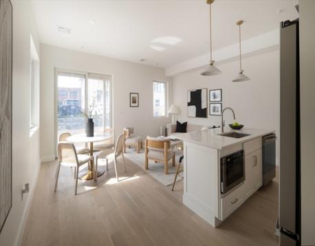 This ground-up new construction 2 bed, 2 bath first-floor condo offers the kind of easy living everyone wants, complete with private backyard space, tucked away in an Orient Heights neighborhood. The layout is thoughtful and highly functional, with an open kitchen and living area that flows seamlessly to a slider off the dining space, leading to a level backyard perfect for entertaining or letting your dog out with ease. The kitchen checks every box with white shaker cabinetry, zellige tile backsplash, stainless steel appliances, gas range with hood, island, and champagne bronze accents. The primary bedroom easily fits a king bed and features double closets plus a clean, modern en suite with glass shower and double vanity. The second bedroom is flexible as a guest room or office. In-unit laundry and a polished second bath with tub/shower complete the home. A low-maintenance, move-in ready option just minutes to the beach, transit, Logan Airport and everything Boston has to offer.