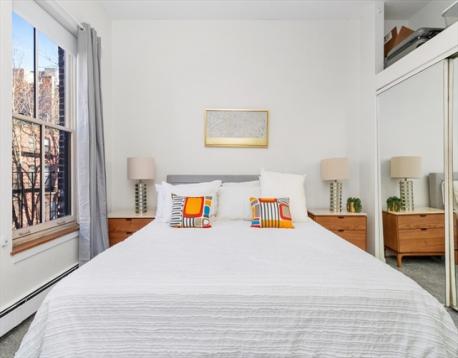 Classic South End floor through condo overlooking beautiful Worcester Square park and fountain! Two generously sized bedrooms, one large enough for a king bed. Handsome chef's kitchen including cherry cabinets with integrated dishwasher, quartz countertops, and brand new refrigerator. Ten foot ceilings, exposed brick and gleaming hardwood floors complete the cozy, classic look and feel of this unit. South facing orientation floods the unit with afternoon sun! Convenient to all the South End has to offer.