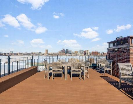 Perched on the sixth floor, this refined water-view residence offers an exceptional blend of elegance and location, with sweeping vistas of the Charles River and the Cambridge skyline. The open-concept living and dining space is anchored by a chef-caliber kitchen featuring an oversized island, premium appliances, granite countertops, and custom cabinetry. Bespoke built-ins enhance both sophistication and storage. The primary suite captures river views and includes two closets, a reading nook, and a private en-suite bath. A generous second bedroom offers its own sleek en-suite with glass shower. A beautifully maintained rooftop deck provides panoramic river and city views. Moments from the Charles River Esplanade, Newbury Street, Boston Common, Copley Square, and Prudential Center, with elevator access and on-site superintendent. With attentive management and meticulous upkeep of the building, daily living here feels seamless and refined.