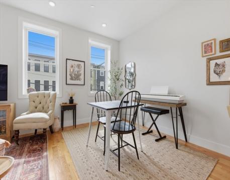 Rare opportunity to own a Luxury Brownstone in Jeffries Point. Remodeled in 2023, this residence boasts impressive ceiling heights, elegant finishes, and is soaking in Western sunlight. The chef’s kitchen, equipped with a farmhouse sink and stainless steel six-burner stove, seamlessly leads to dining and living rooms, perfect for entertaining guests. Features 2 beds & 2 full baths, incl. a king-sized primary with en suite bath, modern matte black finishes, double-sink hardwood vanity, and spacious walk-in shower. An additional BONUS four-season space is perfect for an office, nursery, or gym. With walk-in closets, a coat closet, and private 200 sq. ft. basement storage, there is no shortage of space. Convenient in-unit laundry. PRIME LOCATION! 0.2 Miles from Maverick MBTA Station, with easy access to downtown and beaches. Walking distance to Airport without any noise and blocks away from Eastie’s best restaurants and skyline views, incl. Piers Park, Cunard's Tavern, and A Quiet Few.