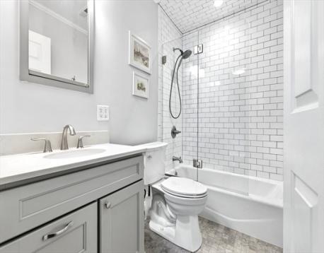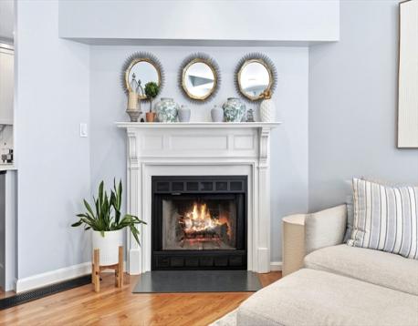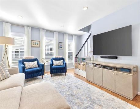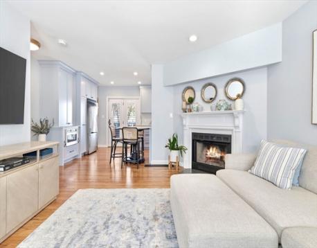 Meticulously renovated Townhome with Garage Parking! This sun-drenched property provides an idyllic floor plan with high ceilings, beautiful detail throughout, and incredible natural light. A no-expense-spared renovation features a magazine-quality kitchen with floor-to-ceiling cabinetry, porcelain counters, SS appliances, and built-in dining peninsula! Large & dimensional living, with wood fireplace, is the perfect space to relax or entertain. Start the day with a cup of coffee on your direct-access private deck! Oversized primary offers space for a king-size and walk-in closet. Generous guest bed is perfect for a growing family and/or home office. Flawless bath provides designer vanity, frameless glass shower, and full tile surround. Enjoy the quickly approaching Spring/Summer on your elevated deck, or the professionally landscaped grounds. A truly rare opportunity offering single-family function, garage parking, and turnkey living - just steps to everything Charlestown has to offer!