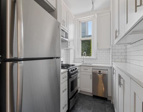 Classic Back Bay proper one bedroom condo in a professionally managed elevator building . Great sunlight and south facing city views of the Prudential. Move in ready with hardwood floors and freshly painted throughout Large living area with woodwork and fireplace, Renovated kitchen and tile bathroom and a large bedroom with two closets. Common laundry. Currently rented at $3350 TAW lease.