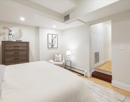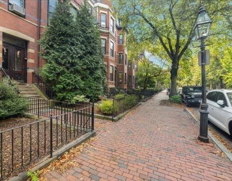 Gorgeous, sunny, modern garden-level condo with private entrance in elevator building on one of the most picturesque streets in Boston. With over 1,200 sq ft, 2 bedrooms, 2 full baths, this spacious home features an open living/dining area, high ceilings, maple floors with accent inlay, crown moldings, a brick fireplace and a modern kitchen with new stainless steel appliances, granite counters and vent hood. Both bedrooms have tiled bathrooms and large closets. The ample primary suite also has an in-unit washer/dryer. Live steps to fine restaurants, cafes, boutique shops on Newbury Street, Prudential Center, Symphony Hall, the Esplanade, the Copley T, major highways and all that the wonderful Back Bay has to offer. Professionally managed, pet-friendly association with low condo fees that include heat and hot water. Sale includes a direct-access deeded tandem PARKING space! Simply beautiful and convenient. First showings at the Open House Saturday, Oct. 11th, 12-2 pm.
