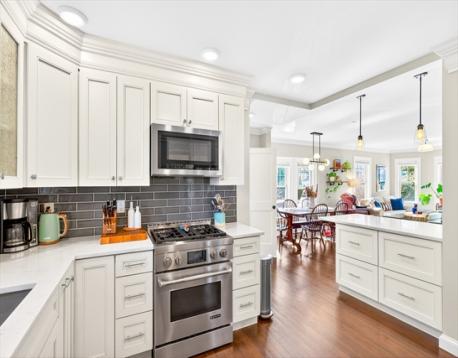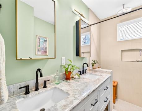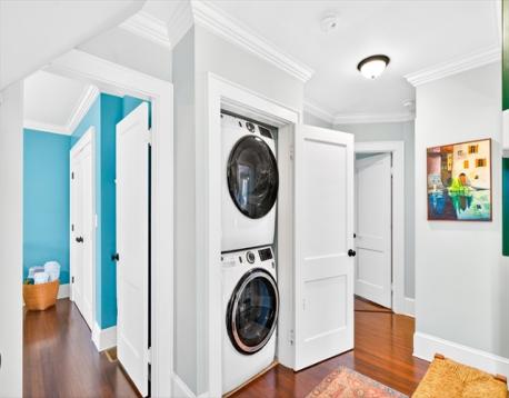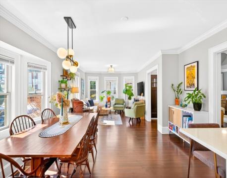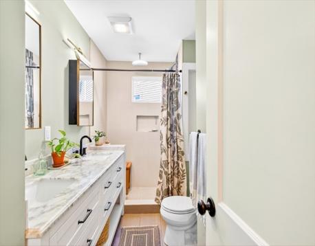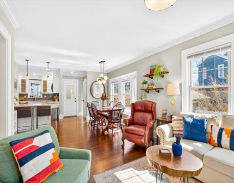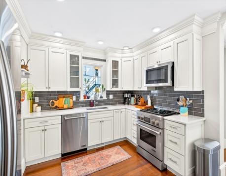 Tastefully renovated (2018) condo on a quiet dead-end street in Roslindale Village. Features include rich oak floors, custom millwork, and an open-concept layout from living/dining to a chef’s kitchen with Thermador stainless appliances, quartz counters, white shaker cabinets, and glass tile backsplash. Two spacious bedrooms with great closet space and built-ins. Full bath with double vanity, marble top, and stone-surround tub with rain shower. In-unit laundry + half bath. ~600 sq ft exclusive-use basement with walkout, common yard & patio area for grilling szn. 1-car garage parking and a second outdoor space. Super close to shops, restaurants, Commuter Rail, and Arnold Arboretum.