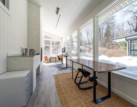 Mid-century masterpiece ideally sited on a wooded private lane cul-de-sac at the base of Moss Hill, fully reimagined in 2018 with meticulous craftmanship & sophisticated design throughout. Set on an exceptional quarter-acre lot under a canopy of mature trees, the property is framed by an antique stone wall abutting the serene woods of Hellenic Hill in back & bucolic park-like land in front offering unobstructed wooded views from nearly every window. A once-in-a-generation chance to own what is arguably one of the most desirable Pondside parcels in 02130. Sunlight fills the home thru large windows, vaulted ceilings & open spaces. Custom designer baths, 3 FP, skylit chef's kitchen w/ open plan dining, sunny family room, 5 BR & 3 full BA plus an extraordinary sunroom w soaring ceilings & stunning views of the land. Bluestone front patio & rear deck offer ideal alfresco living, minutes to downtown Boston. Walk to British School/Dexter Southfield, 1.5 miles to Park School. Pristine home!