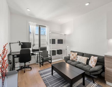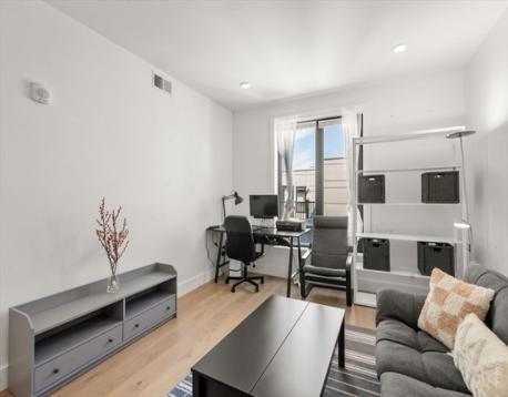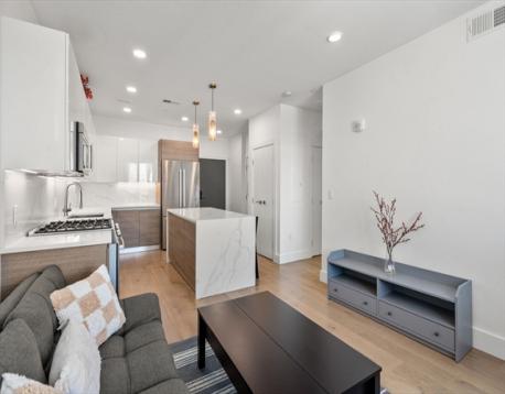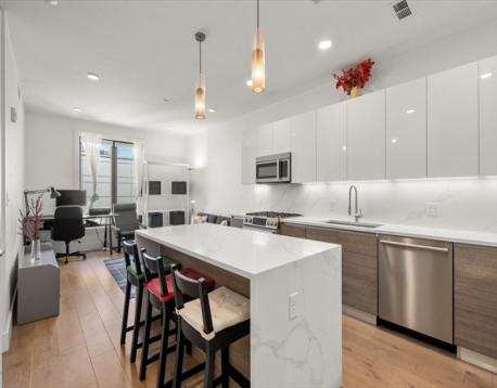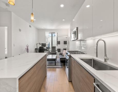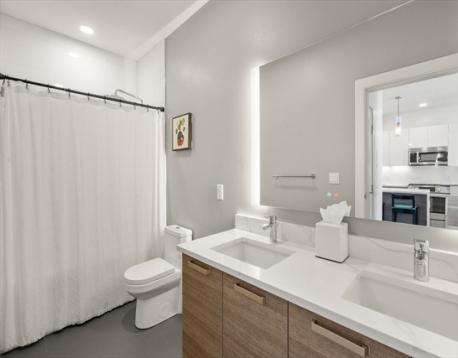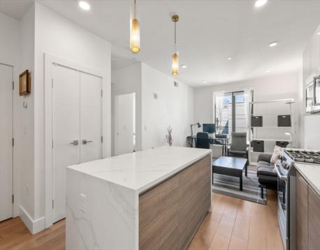The unit is maintained in great condition. Situated on the fifth floor, represents an opportunity for refined city dwelling. The kitchen features sleek flat panel cabinets, beautiful quarts counters, and an inviting island. It is seamlessly integrated into an open-plan layout with the family room, fostering an ideal environment for entertaining and daily life. The family room provides a welcoming atmosphere, distinguished by its elegant wood flooring. The bathroom is appointed with a double vanity, offering ample space for personal routines.The unit has one parking space and one storage space.Amenities including bike storage, fitness center, a club room, a roof deck with city views . Complete with one garage parking space and a dedicated storage unit. Easy access to Boston University, Boston Landing, and major highways,restaurants, shops.