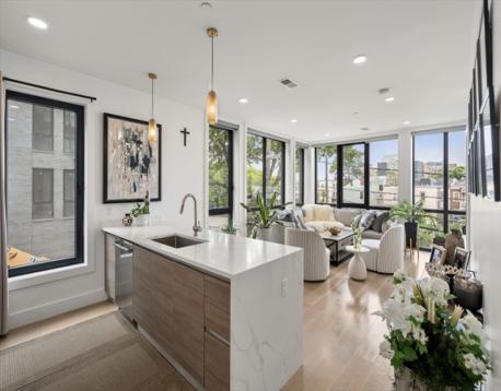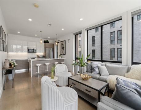Sun-drenched 2-bedroom, 2-bath corner residence offering one of the most desirable layouts in the building, thoughtfully designed for exceptional light, flow, and everyday functionality. Expansive floor-to-ceiling windows flood the open living and dining areas with natural light, complemented by custom blinds to create the perfect ambiance from morning to night. The chef’s kitchen showcases sleek, high-end appliances and a generous peninsula that opens seamlessly to the living space ideal for entertaining or relaxed daily living. Both bedrooms are well proportioned with ample closet space, and in-unit laundry adds effortless convenience. Enjoy elevated living with premium amenities including a fitness center, club room, and a spectacular roof deck with grill and sweeping city views. Complete with one garage parking space and a dedicated storage unit. Perfectly positioned in the heart of Allston, just steps to vibrant dining, shopping, and public transit.