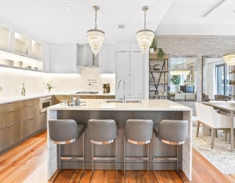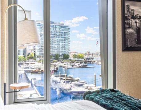 With water views on both sides, this elegant floor-through residence at PIER 4 offers 2 bedrooms plus a den and 2.5 bathrooms. A private balcony extends the living space, providing a serene on-the-water experience that defines true waterfront living. The gourmet kitchen features Gaggenau appliances, a gas cooktop, marble countertops, a spacious pantry, and a wine fridge. Additional highlights include two side-by-side garage parking spaces and guest parking. Residents enjoy boutique luxury with access to premier amenities including a state-of-the-art fitness center, golf simulator, dog spa, residents’ lounge, outdoor grill, fire pit, and doorman and 24-hour concierge services. Ideally located in Boston’s vibrant Seaport District, PIER 4 is surrounded by water on three sides, offering a rare and exclusive lifestyle steps from world-class dining, shopping, and the Seaport’s lively waterfront scene.