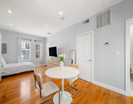 Welcome to historic Jeffries Point, where charming architecture, scenic parks, & the waterfront come together to create one of Boston’s most desirable neighborhoods. Close to Maverick MBTA station, the East Boston Ferry, & the harborwalk, this beautifully renovated studio condo offers the perfect blend of modern living & neighborhood charm. Tiny home enthusiasts, city dwellers seeking a pied-à-terre, & savvy investors will all appreciate the open-concept, ideal for flexible & adventurous city living. Enter the kitchen area, complete w/ white cabinetry, quartz countertops, stainless steel appliances, including a brand-new refrigerator, faucet, & garbage disposal. The unit also features central heating & cooling w/ a new Nest thermostat, recessed lighting, and gleaming hardwood floors throughout.A spa-inspired bathroom w/ new glass shower door, modern lighted medicine cabinet, & the convenience of a new in-unit washer/dryer has been designed to ensure comfort, style & efficiency.