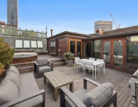 Nestled among the classic brownstones of Back Bay, the Burrage Mansion’s striking white-stone, castle-like façade sets it apart along Commonwealth Avenue. 314 Commonwealth is one of Back Bay’s most iconic addresses—rich in history, defined by architectural significance and timeless appeal. An elevator opens directly into this expansive 2-bedroom, 2.5-bath Penthouse residence, offering 4,758 Sq. Ft. of living space. The 1st level is an open-concept layout connecting the living and dining areas, anchored by a sleek, minimalist kitchen featuring an oversized island. A sculptural floating staircase leads to the home’s crown jewel: an exceptionally private rooftop complete with a gas grill & hot tub. The primary suite and bath offers direct access to the roof deck, creating a true indoor-outdoor living experience. Additional features include private parking and storage within a heated garage. A rare offering for those seeking architectural distinction, scale, and quiet luxury.