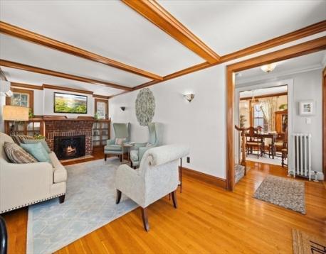 Charming Colonial in West Roxbury. Step into the inviting living room, featuring a gas fireplace ,beam ceilings, and custom gumwood built-in bookcases. The updated kitchen boasts sleek stainless steel appliances, while the dining room showcases a classic built-in hutch, perfect for entertaining. Upstairs, the spacious primary bedroom offers an ensuite bathroom and walk-in closet, with two additional large bedrooms featuring ample closet space. The finished basement includes a versatile playroom/workout area and the attic provides a great workspace or home office. Outdoors, enjoy the professionally landscaped yard with private patio and a detached garage. This home is located in a quiet West Roxbury neighborhood but also walkable to shops, restaurants, and public transportation. This home blends timeless charm with modern comforts, offering a perfect place to live!