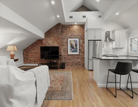 Live above it all in this exceptional three-bedroom penthouse atop a classic Beacon Hill walk-up. Flooded with natural light from multiple exposures and two skylights, the top floor features an expansive open-concept living and kitchen space with soaring 15+ foot vaulted ceilings. Step directly onto your private deck and enjoy a personal urban retreat. Originally built in 1860 and thoughtfully reimagined for modern living, this home blends historic charm with contemporary style. Highlights include exposed brick walls, oak hardwood floors throughout, plentiful closet space, and a crisp, modern kitchen. Two marble fireplaces anchor the bedrooms, adding warmth and elegance. Professionally managed and pet friendly, the building offers recent capital improvements including a new boiler and a smart intercom system with remote front door control. Rented garage parking is available at nearby Hawthorne Place. Call today to see this rare offering in one of Boston’s most coveted neighborhoods.