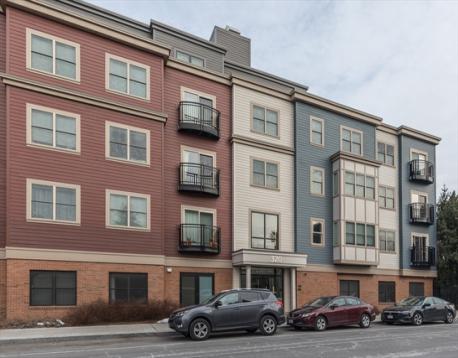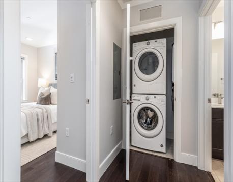 Move right into this pet-friendly one bedroom penthouse home in a modern elevated building in East Boston, offering courtyard views, premium finishes, and 1 off-street parking space. Designed for comfort and convenience, the home features Hardwood flooring throughout, crown molding in the living room, recessed lighting, and a sliding glass door to a walk-on Juliet balcony. The kitchen includes quartz countertops, a glass tile backsplash, Classic Portrait Square cabinetry in the Kona palette, and stainless steel appliances. Enjoy the convenience of an in-unit washer and dryer and a full bath with tiled tub/shower and tile flooring in both the bath and laundry areas. Located in close proximity to Maverick station, Piers Park, dining, and water taxi service to the Boston Seaport, with easy access to the Sumner Tunnel, Interstate 93, Massachusetts Route 1A, and Logan International Airport, plus Maverick Street Gate access for direct highway entry and discounted tolls.