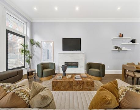 Exceptional, well-designed condominium across two levels with a single family feel in a fantastic South End location. The main floor features an open-concept kitchen with ample storage and a large island with seating. This level also includes living and dining areas, a powder room, and a private patio directly off of the kitchen. This lovely outdoor space is ideal for dining, entertaining, or relaxing outdoors. The lower level includes three generously sized bedrooms and three full baths, providing comfortable separation of living and sleeping spaces. Enjoy a large, second private expansive outdoor area directly off of the lower level with water and gas hook-ups, perfect for gatherings, gardening, or a quiet retreat. This home offers spacious living in a highly sought after neighborhood in close proximity to all the coveted South End has to offer.