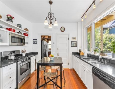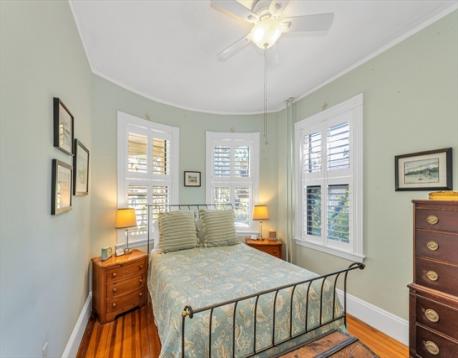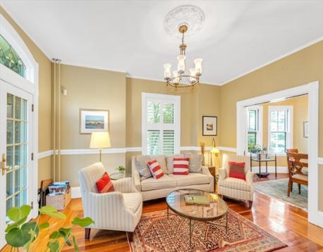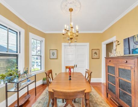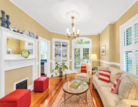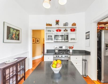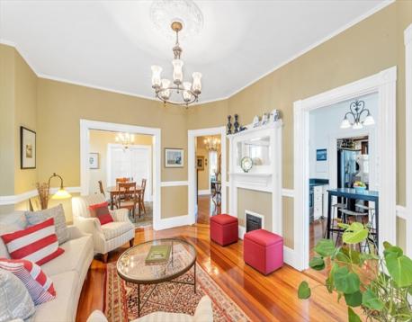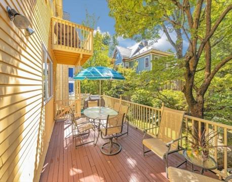 Classic old-world charm meets modern convenience in this beautifully maintained 1,263 sq ft condominium. Rich with original detail and soaring ceilings, this handsome first-floor home offers a warm, sun-filled atmosphere throughout. Currently configured as a two-bedroom, public record reflects a three-bedroom layout, offering flexibility for a variety of living needs. Set within a well-preserved Jamaica Plain Victorian, the home showcases timeless architectural features including original ceiling medallions, stained glass, French doors, pocket doors, and custom built-in cabinetry, all thoughtfully complemented by tasteful updates. Enjoy a spacious eat-in kitchen with pantry, in-unit laundry, A/C and generous room sizes. Step outside to a large private back deck overlooking a landscaped yard, perfect for relaxing or entertaining. Additional highlights include private basement storage and an unbeatable central JP location just steps from shops, restaurants, parks, and public transit.
